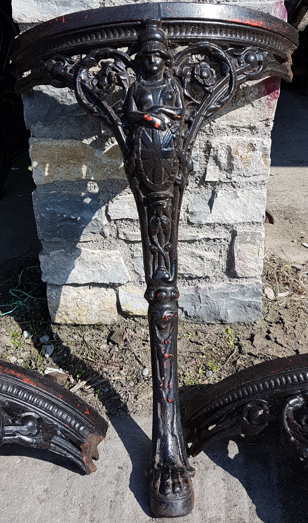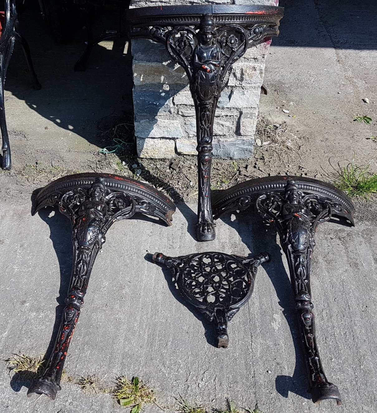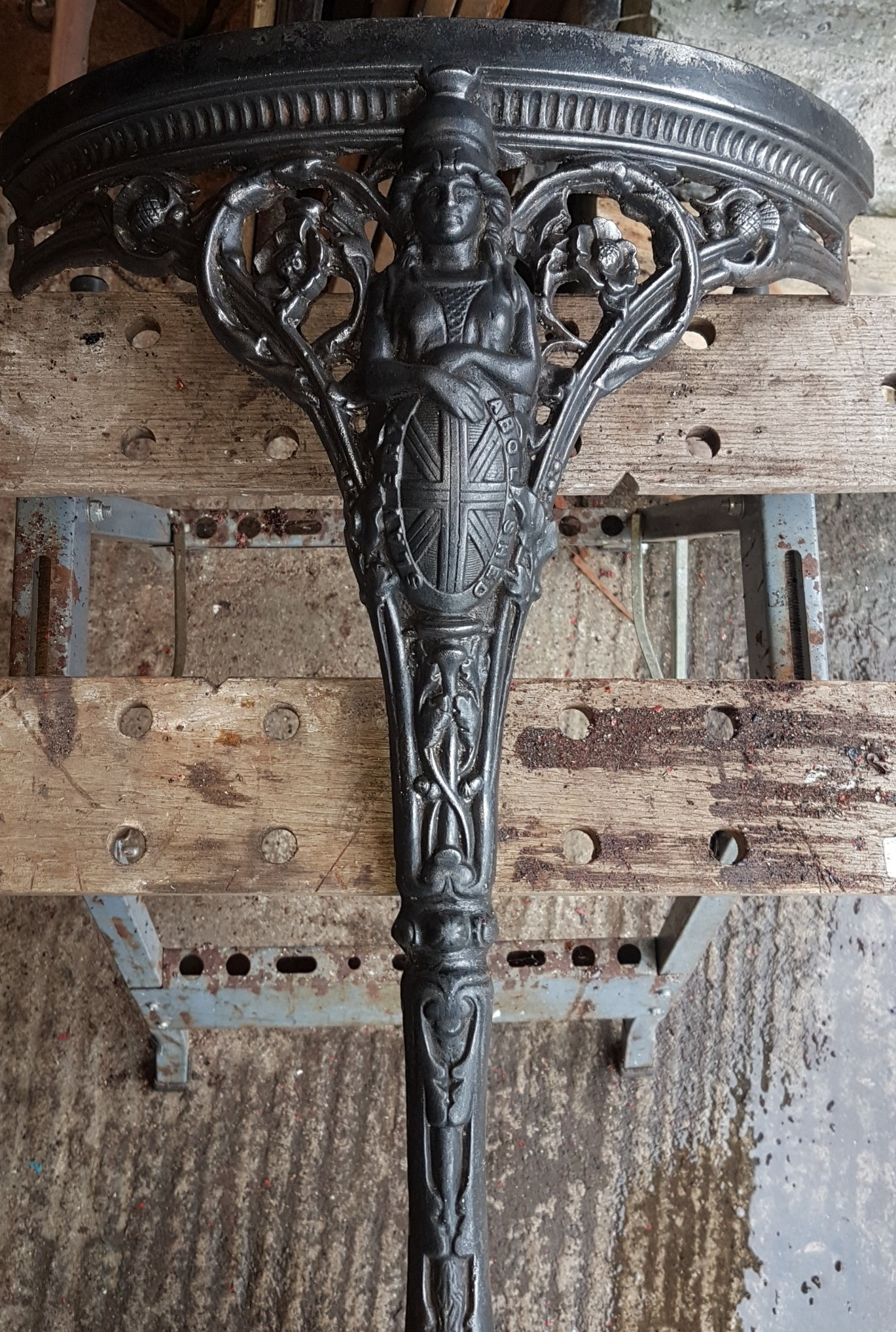 It would turn out that the table has a story all of its own and was in fact an English Cast Iron "Abolitionist" Pub Table from the mid-19th century! With frieze mounted lion masks and leg supports displaying the figure of Britannia holding a shield bearing the inscription "Slavery Abolished". We had unwittingly uncovered a true antique for our client!
